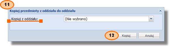 Zakładka "Przedmioty szkolne" Dostępne funkcje: •dodawanie przedmiotów •kopiowanie listy przedmiotów z innego oddziału